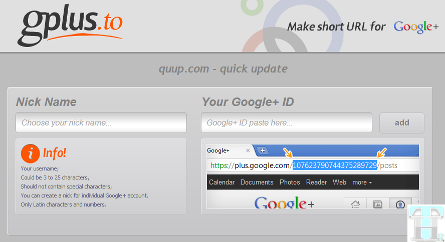 - Visit gplus.to to create short URL and RSS feed for your Google+ profile and/or Google+ Page.