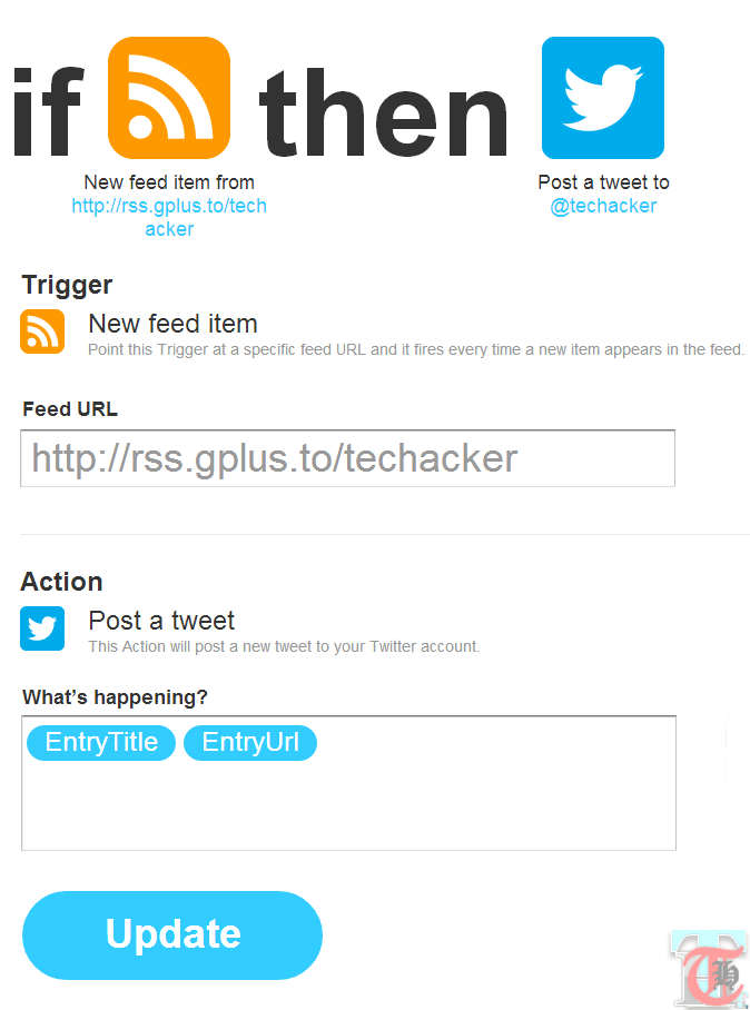 - Now visit this IFTTT recipe to create a recipe for yourself similar to what I have here. In IFTTT format the recipe triggers when there is a new item in the RSS Feed and then posts the tweet to Twitter.