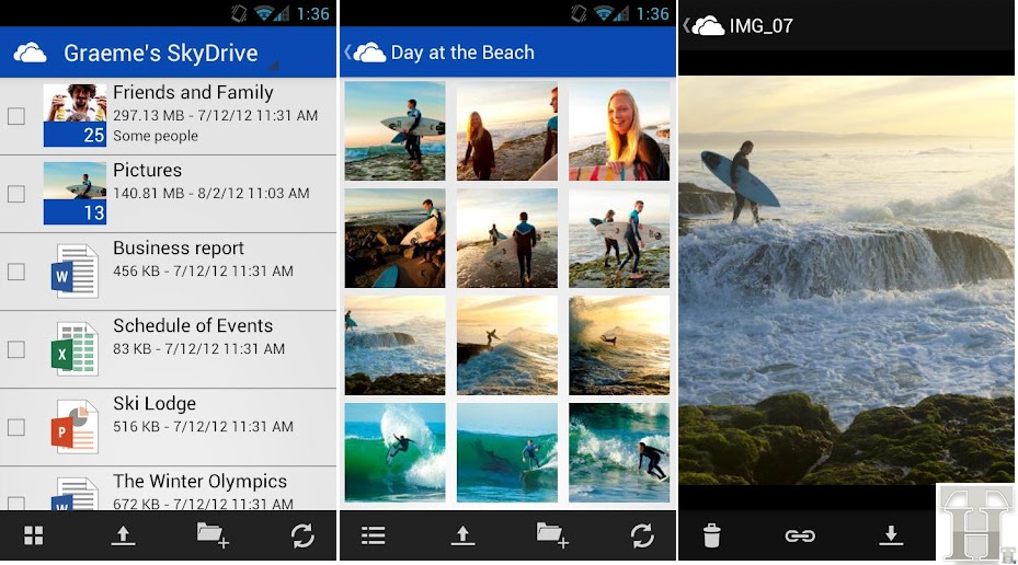 With SkyDrive app for Android, you can now easily access and share files on the go. You can also upload photos or videos from your phone to SkyDrive. The Android app boasts the following features: