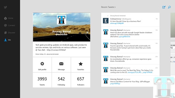Official Twitter app for Windows 8 brings uses Windows 8 technology and is available for Desktop and RT both platforms. Below are some feature highlights: